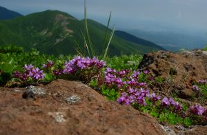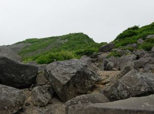 9:28 不忘の碑出発。 休憩時間3分。 ![]() 不忘の碑の広場。 不忘の碑の広場から不忘山展望。 不忘の碑付近からは西吾妻山塊が展望されました。 右手には水引入道と屏風山が展望できました。 ![]() 右端が水引入道で,写真の継ぎ目当たりの尖った山が屏風山です。コルの奥に見えているのは後烏帽子岳と思われます。 不忘の碑から不忘山までは昨年ほどではないですが,お花畑で楽しむことができました。 不忘山山頂手前20m位の所まできましたが,写真撮影で前に進めません。 ハクサンサイコ,ハクサンフウロ,コキンレイカ,ホソバノキソチドリ,ミヤマシャジン,イブキトラノオがありました。他にも不明種がありました。図鑑やインターネットで調べても未だに分かりません。 この間花撮影で10分程ロス。 9:55 標高1,705m。 不忘山到着。 休憩 山頂は広くてかなりの人数が休憩できます。 かなり強い風が吹いています。西側から風が吹き上げてきています。 10:30 南屏風岳に向かって出発。 休憩時間35分。 南屏風岳に向かいましたが,あまりに風が強いため,社の岩を越えたところで,先に進むのをやめて戻ることにしました。 社の所にイワオウギ,イワキンバイ,キバナノカワラマツバ,イブキジャコウソウがあり,写真に撮りました。イワキンバイはミヤマキンバイと思い撮影しましたが,宿舎に帰ってきてから,図鑑を見ていたら,イワキンバイであることが分かりました。パートナーが,しつこくミヤマキンバイではないように見えると言い続けていました。 水引入道をバックにイブキジャコウソウを撮影しました。 この社の所で花撮影のため15分程楽しみました。イワキンバイ,キバナノカワラマツバ,イブキジャコウソウ等の写真を撮りました。 10:54 標高1,705.3m 不忘山出発。 とにかく風が強いです。段々強くなってきました。朝のうちに晴れていたのですが,雲も広がってきています。 11:30 出発。 標高1,630m 不忘の碑通過。 不忘山からここまで花撮影でものすごく時間がかかってしまいました。 15分はロスしています。 ガレ場の広場付近でガマズミが赤い実を付けていました。 12:20 標高1340m 弘法清水到着。 休憩。 ここはキンコウカが満開です。写真に撮りました。 12:32 標高1,340m 出発。 休憩時間12分。 雨が降りそうな気配になってきたので,のんびりするのを止めて出発することにしました。 ここで白石高校生徒3名と引率者が大きなザックを背負って通過していきました。ザックに白石高校と書いていましたが,大学生風に見えました。 弘法清水を下りて少ししたら小雨が降り出してきました。「急げー,急げー」 白石高校パーティに追いつきました。 12:56 標高1,150m付近。 小川渡渉の道標通過。 13:15 1,000m 白石女子校山小屋跡通過。 ゲレンデに出たら注意が必要です。下りの登山道はリフト乗り場下を横切るように進む道がありますが,こちらを進むと遠回りになります。 ここは直線的に藪っぽいところを進むと近いし,無料休憩所に出られます。登るときによく確認しておくと良いかも。 私がアザミなどの写真を撮っている内に,パートナーがどんどん先に歩いていきました。私が後から追いかけ追いつきました。 13:33 標高895m 無料休憩所到着。 休憩。 トイレ休憩を取りました。 弘法清水から無料休憩所までは,殆ど花撮影を行わず,急ぎ足で下りてきました。我々にとってはかなり急ぎました。 13:42 標高895m 出発。 休憩時間9分。 13:45 標高880m 白石スキー場駐車場到着。 途中咲いていた植物 アオチドリ,イチヤクソウ,イブキジャコウソウ,イブキトラノオ,イワオウギ,イワキンバイ,ウスユキソウ,オカトラノオ,オヤマソバ,カキツバタ?,カニコウモリ,キバナノカワラマツバ,キンコウカ,クルマユリ,コキンレイカ,コバギボウシ,コメツツジ,シロバナクモマニガナ,ソバナ,タカネアオヤギソウ,タカネニガナ,タテヤマウツボグサ,ツルアリドオシ,ハクサンサイコ,ハクサンフウロ,ホソバイワベンケイ,ホソバノキソチドリ,ホタルブクロ,マルバダケブキ,ミヤマカラマツ,ミヤマシャジン,ミヤマホツツジ,モウセンゴケ,ヤマショウマ,ヨツバヒヨドリ。 以上35種他アザミ類2種,不明種数種。 |
