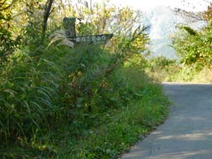 @県道51号線を白石市側から進み,白石市境を過ぎ,七ヶ宿町に入ってすぐの所を右折する。 道路脇に七ヶ宿町の大きな看板があるので見落とすことはない。 ![]() A「南蔵王キャンプ場」の案内板があるので,それを目当てに進む。ただ,キャンプ場は平成16年に閉鎖されているので,看板がいつまでもあるか不明。 A−1舗装が切れる二股で左折。左ヤブ中に看板があるが,ヤブの中で気が付きにくい。 ![]() A−2砂利道を進むと一部舗装になっている二股で右折。写真で見える舗装は手前に少しあるだけで,砂利道である。左にある看板はヤブ中で気がつきにくい。 ![]() B砂利道を進むと間もなく登山口(旧南蔵王キャンプ場)に着く。 |