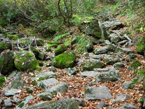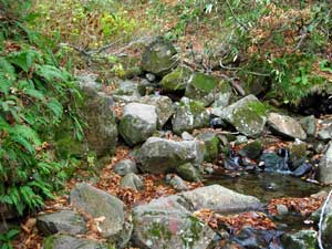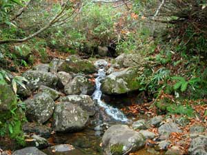 | 9:28 升沢小屋出発 休憩時間15分。 先着登山者,ご夫婦登山者と話をして少し時間が過ぎました。 升沢小屋を出発したらいきなり沢です。かなりの水量があって「えっ,登山道がない。」という感じです。 ここは二股の沢が合流していて,どちらに進むのか不明です。地形図を見て右に進みました。 少し進むとさらに分岐していますが,ここは左に回り込んで進むと進みやすく,すぐ上で合流しています。 そこから少し登ると沢を交わして登山道に出ます。 少し進むとまた沢に入ります。9:47 標高1,295m 沢の分岐通過。 ここは右にテープが着いています。9:53 標高1,340m 沢終わり。 沢もそろそろ終わりのようです。沢の詰めのような急登です。 9:56標高1,360m。 沢の詰め終わり。 沢が終わりました。登山道に出ています。 「階段ですわ〜。」急登です。10:04 標高1,425m 千畳敷通過。 ここは3番です。「あと二つ。」 「お〜,なるほど。右後方周辺の地形が平たくなっています。」10:06 標高1,425m。 蛇が岳分岐通過 「もう少しだ。」 10:13 標高1,480m 船形山山頂展望 緩斜面手前で右を見ると船形山が見えました。登山者も小屋もハッキリ見えます。登ってくるときはガスがかかっていましたが,今はまったくガスがかかっていません。 しかし,完全に紅葉が終わっています。多少遅いかなと思っていましたが,まったく紅葉がありません。かなりガックリです。 船形山分岐で数人グループの登山者に道を尋ねられました。 升沢小屋ルートで降りたいが,道はこちらで良いかとのことでした。大滝から登ってきて三光の宮の周回ルートで戻るそうです。沢の状況や,蛇が岳コースなどの状況を教えてあげました。5分位立ち話をしてしまいました。 10:25 標高1,500m 船形山到着 山頂の標識です。ばかでかいです。とりあえず小屋で休憩します。「ぜん〜ぜん紅葉ダメだ」 広い山頂に登山者はまばらにしかいません。小屋の中は休憩者で満杯でした。風が強く寒いせいでしょう。 |