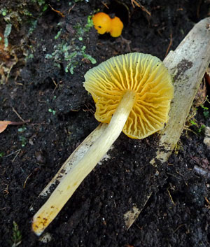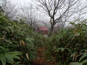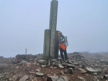 | 7:09 標高555m 高畑キャンプ場駐車場出発。 駐車場には我々の車の他に5台駐車してます。我々より5分ほど早くご夫婦が出発していきました。 駐車場周辺でも紅葉のピークが過ぎた感じです。 ![]() 駐車場から200m程舗装道路を歩いたら,登山口があります。 30番の標識が設置されています。山頂が1番だろうと思いますが,最後に確認できたのは千畳敷の3番でした。 ![]() パートナーの地図練習で5分ロス。 7:38 標高735m 旗坂平通過。 周辺は紅葉が僅かに残っていました。 ![]() 7:52 標高810m 一群平通過。 この辺は緩やかな登山道です。 8:00 標高860m 休憩。 8:09 出発。 休憩時間9分。 登山道に不明キノコがありました。アキヤマタケと思われますが,自信がありません。 ![]() 8:30 標高975m 鳴清水通過。 9:10 標高1,150m 標識15番で休憩。 樹上に15番の標識が取り付けられていました。 ![]() 周辺はブナの巨木林で,ガスがかかっていて神秘的です。 この後どんどん霧が濃くなって,神秘的などと言っていられなくなりました。 ![]() 9:20 15番出発。 休憩時間10分。 9:21 標高1,155m 三光の宮分岐通過。 9:22 標高1,165m 大滝分岐通過。 9:41 標高1,210m 不動石通過。 普通に歩いていると,気がつかない程度の小さな看板があります。「石」と書かれていますが,こんもりとした小さな小さなピーク程度です。 9:47 標高1,190m 瓶石沢(蛇ヶ岳分岐)通過。 小屋まで0.6km,旗坂キャンプ場5.3kmの道標有り。この瓶石沢はまず見逃すことはないほど,はっきりとした沢ですが,水はほとんど流れて無くて,カレ沢のようです。土石流の跡かもしれません。強い雨の時は注意が必要かも。 途中写真撮影で8分ロス。 写真撮影って意外に時間が掛かることが,最近分かってきました。 10:09 標高1,210m 升沢小屋到着。 休憩。 ![]() 小屋の中から登山者が一人出てくるところでした。その後は我々だけでした。 トイレを利用しましたが,バイオトイレで使用後にハンドルを回す方式なので,重くて腕が結構疲れました。 10:30 升沢小屋出発。 休憩時間21分。 ちょっとの休憩のつもりが,たちまち時間が過ぎてしまいました。雰囲気の良い小屋なので,まったりと過ごしてしまいました。もっと長居したい気持ちでした。 升沢小屋からは沢歩きです。水の中は歩きませんが,岩伝いと両岸を行ったり来たりルートファンデングしながら登っていきます。 ここでもパートナーが地形図読みの勉強です。 30分位遡ってきたでしょうか。いよいよ急登になってきました。沢の詰めです。 11:15 標高1,420m 千畳敷(3番標識)通過。 周辺はガスで何も見えません。 11:17 標高1,425m 蛇ヶ岳分岐通過。 旗坂6.8km,船形山0.7kmの道標有り。 ガイド本では山頂まで15分と書かれていますが,15分は健脚でないと無理と思いました。 少し急登を登ると登山道は緩やかになります。この辺はいつも風が強い場所ですが,幸いなことに,低木樹林帯の中を歩くので,風の影響をあまり受けません。 11:33 1,490m 観音寺分岐通過。 間もなく山頂です。ガスで周囲がほとんど見えません。もちろん山頂も見えません。 11:35 標高1,500m 船形山山頂到着 休憩。 蛇ヶ岳分岐から15分では無理と思っていましたが,ゆっくり歩いて18分で着いてしまいました。20分はかかると思っていました。 ![]() ガスで何にも見えません。でも,避難小屋は見えるので,心配はありません。 写真撮影して早々と避難小屋に入りました。 小屋の中にはご夫婦1組,4人グループ1組,単独者1人の7人が先客としていました。我々を入れて9人となり,休憩的には一杯一杯の広さでした。 12:15 標高1,500m 船形山山頂出発。 休憩時間40分。 少し早めに切り上げたつもりでも40分もたってしまいました。我々はいつものんびり傾向です。しかし,他の先客7人は我々が立つときにまだ居ました。 ガスが酷いのでカメラを仕舞いました。ここからは写真がありません。 12:33 1,435m 升沢と蛇ヶ岳分岐通過。 蛇ヶ岳に向かいます。 13:17 標高1,400m 蛇ヶ岳山頂到着。 休憩。 山頂は風が強いので,20m程戻って休憩しました。 升沢分岐から意外に時間が掛かりました。パートナーには言わなかったのですが,蛇ヶ岳山頂を見逃してしまったのだろうか。と,心配になりました。途中で地形図を確認したら,特徴のある方向転換場所が分かったので,ホッとしながら進みました。 13:26 出発。 休憩時間9分。 13:55 標高1,215m 雨具着込む。 雨が少し強くなった様な気がして,雨具の上を着用しました。それまでは雨というか,霧というか分からない状況で,いつの間にか帽子がぐっしょりと濡れていました。これがいわゆる小糠雨でしょうか。 13:58 出発。 3分ロス。 13:59 標高1,220m。 瓶石沢(升沢と蛇ヶ岳分岐)通過。 旗坂5.3km, 三光の宮1.4kmの道標有り。 な〜んと,雨具を着込んだ場所から1分も歩かないところが,瓶石沢でした。相変わらず地形図の読めない私です。 14:28 標高1,185m 大滝分岐通過。 14:35 1,185m 三光の宮往復 片道0.3kmで標高差30m位でしょうか。 パートナーが三光の宮を見たいとのことなので案内しました。 14:36 1,180m 15番で休憩。 三光の宮