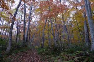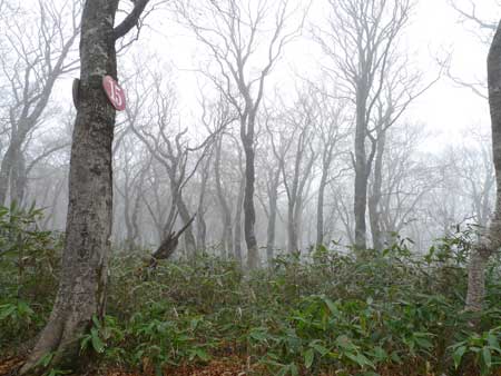 | 東北地方の紅葉シーズンも終わり,さて,何処に行こうかと悩んだ。パートナーと一緒に船形山の升沢コースを,既に登っていると思っていたが,私の勘違いだったことが分かり,二人で升沢コースを登ってみることにした。 駐車場付近は紅葉だったが,三光の宮付近からは既に紅葉が終わり,ブナの落葉木が初冬の雰囲気を感じさせた。 また,登るほどにガスが濃くなり,山頂付近では視界が200m〜300mだった。山頂小屋で40分ほど休憩後に下山開始したが,さらにガスが濃くなり,小糠雨状態になってきたので,瓶石沢手前で雨具の上を着用した。下るほどにガスも濃くなり,三光の宮を過ぎ,一群平付近では視界が200mを切る状況になった。幸い登山道は一本道なので,怖くはなかったが,不明瞭な登山道の山だったら,相当ビビッたろうなぁ。 なお,旗坂から大滝キャンプ場への林道は通行禁止の看板が立っていた。 以前に走行したことがあったが,乗用車ではかなりの悪路を長走行で苦労した。 |