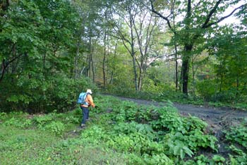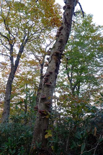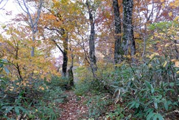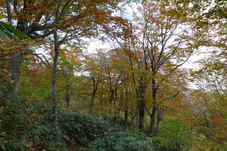 | 10月11日(月祝日)に約3ヵ月ぶりの登山で,刈田峠から南屏風岳まで行き,下山は澄川スキー場上部の林道に下りた。総歩行距離約12km余りを歩いてから,5日目に船形山旗坂キャンプ場コースを歩いた。前回登山疲労がまだ残っている中での,このコース歩きはかなりの不安があった。 山頂についてから,下山コースは当初計画の蛇ヶ岳経由を止め,大滝登山コース経由で下りることにした。 大滝登山口コースは山頂から道幅の狭い急下降で,露岩の登山道が続くが,それを過ぎると開けたブナの巨木林の中を歩くので,気持ち的には楽しく下りることができた。 登りも下りもきのこの写真を撮りながらの道中だったので,行動時間がとんでもなくかかってしまい,6時40分駐車場出発で,駐車場到着が,16時57分になった。すでに薄暗くなりかかっていた。 |