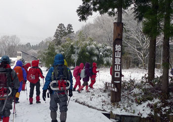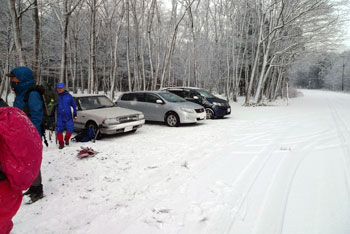 雪のち晴れ。尾根に出るまで無風。尾根はやや風有り。登山口付近では晴れ。 |