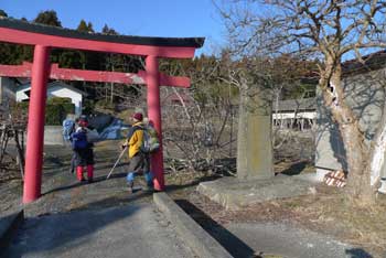 登山口;西山へ赤鳥居をくぐって進む。 |