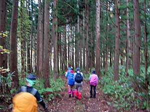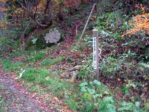 | 12:10 1,191mピーク出発。 休憩時間10分。 写真を撮って出発です。休憩といっても立ち休憩状態でした。ここは休憩場所として適していると思いましたが,もう少し先に良い場所があるみたいでそちらに移動して休憩を取るようです。 1,191mピークから山頂方向の登山道を見ています。周辺の木々は着雪して真っ白でした。綺麗でした。単独山行だったら綺麗などと感じる余裕がなかったと思います。 ![]() 12:27 標高1,170m 横移動途中で休憩。 登山道で昼食になりました。約30分の予定。 周りはガスで雪がシトシト降っています。このあたりが「猪の沢源頭」と思われますが,ガスで何も見えないのが残念です。 12:55 出発。 休憩時間28分。 13:47 標高945m 急斜面途中で休憩。 里が見えてきました。里の方は日が差しているようです。時間も予定どおり下りてきました。 もう雪もありません。13:53 出発。 休憩時間6分。 標高907m 六合目通過。 相変わらず急下降です。 14:05 標高850m 尾根ピーク通過。 ここから90度に曲がって,また急下降です。 14:16 標高740m 四合目通過。 すこ〜し傾斜が緩くなったような気がします。 14:20 標高690m 休憩。 14:25 出発。 休憩時間3分。 14:30 標高625m 過ぎの巨木林の中移動中。 もの凄く太い杉巨木があり写真に撮りました。 ![]() 14:43 標高625m 二合目通過。 二合目過ぎたまもなくのところに熊の糞らしき物有り。だいぶん乾燥しているので日数は立っているようだ。 ![]() 14:52 標高525m 一合目通過。 斜面がだいぶん緩くなっています。 最後の急下降をしています。間もなく登山口でしょう。 15:05 標高385m 登山口到着。 登山口です。こちらの登山口も林道が奥に続いているので,こちらから登るには標柱を見落とさないようにする必要があります。 ![]() こちらの駐車場は8台前後駐車可能。 後続の皆さんが続々下りてきました。周辺には綺麗な紅葉樹木がありました。 ![]() ![]() 林道を歩き始めたら間もなく沢がありました。この沢は問題なく渡渉できました。 ![]() またすぐに沢がありました。こちらの沢は水量が多く,しかも岩が滑るので渡渉に若干難儀しました。雨などで水量が増えると登山靴の中に水が入るほど難儀しそうです。 ![]() 途中にまた杉林がありました。 ![]() 15:21 標高355m 上の台バス停到着。 ここに神社有りました。 |