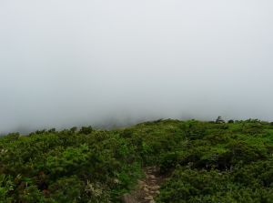 | 8:02 標高1600m 登山口出発 いよいよ出発ですが膝の回復具合が心配です。 駐車スペースから登山口までにハクサンチドリが沢山咲いています。今満開です。他にノビネチドリもありました。 イワカカガミ,マイヅルソウ群生,ツマトリソウ,ミヤマハンショウヅル,ズダヤクシュ,ゴゼンタチバナありました。 チングルマも咲いています。 前山に登り途中で飯豊連峰と大朝費連峰がクッキリでした。今日も写真撮影には良いようです。 大朝日連峰です。杉ヶ峰まで登ると月山も見られます。8:45 標高1690m 前山通過 ミツバオウレンもありました。 9:03 標高1745m 杉が峰到着。 休憩 今日も月山,飯豊連峰,大朝日連峰がクッキリです。 9:12 杉ヶ峰出発 休憩時間9分。 先に休憩した人も後から来た人も,皆さんさっさと先に進みました。最後に残ったのが私だけでした。皆さん元気です。 9:20 標高405m 芝草平端通過。 チングルマが満開です。ヒナザクラ,カタクリもありました。 ヒナザクラです。東北地方特産種とのことです。9:27 この辺はチングルマの群生個所です。 9:32 標高1652m 芝草平中心部到着 屏風岳1km,杉ヶ峰1kmの道標有り。 一面チングルマなどが満開です。イワイチョウ,ヒナザクラがありました。この散策路でお花を十分楽しむことにしました。 散策路です。 ベンチの休憩場所です。なお,芝草平の最低部は,ここから50mほど先になります。 念願のイワイチョウとヒナザクラのの花の写真を撮ることができました。 イワイチョウです。 ヒナザクラです。 ![]() ここが芝草平最低部です。池の奥に見えているのが南屏風岳です。木道の続いている先のなだらかな山が屏風山です。不忘山は池の奥に見えている南屏風岳の更に奥です。 10:12 芝草平出発 休憩時間 杉ヶ峰経由で登山口まで戻ります。 10:34 標高1745m 杉ヶ峰通過。 杉ヶ峰を越えたらあっと言う間にガスがかかってきて,前山が見えなくなりました。 登山道の先の前山が全く見えません。 途中コメバツガザクラが一個所だけ咲いていました。コケモモの蕾も1個所ありました。図鑑で確認するまで,全く見当がつきませんでした。今回で,コメバツガザクラとコケモモの違いをやっと理解することができました。 11:00 標高1675m 前山通過。 ガスです,ガスです。 ![]() 登山初期の頃を思い出します。このくらいガスがかかると「帰ろうや,帰ろうや」とへっぴり腰になっていました。今はこうして一人で山に来て,平気で歩いています。何度も来ている山だからかなぁ。 ガクウラジロヨウラクも小さな花を付けていました。 避難小屋付近の登山道でベニバナイチゴがありました。登りでは気がつきませんでした。 花は下向きに咲くそうです。 11:51 標高1575m 登山口到着 帰りに駒草平に寄ってみました。トイレと休憩を兼ねて寄りましたが,観光客がたくさん来ていて,散策しているので,何があるのか行ってみることにしました。行ってみると偽木で囲まれた地面に,コマクサが沢山咲いていました。思いもよらぬことだったのでビックリでした。柵の横桟の間から身を乗り出して,沢山の写真を撮りました。途中で足を滑らし,柵の横桟に脇腹を何度か打ったので,一週間以上肋骨が痛みました。 今,この山行記録を作成中にこの場所が「駒草平」ということを知りました。 今回の山行で見られた花 イワイチョウ,イワカカガミ,ガクウラジロヨウラク,カタクリ,コケモモの蕾,ゴゼンタチバナ,コマクサ,コメバツガザクラ,ズダヤクシュ,チングルマ,ツマトリソウ,ノビネチドリ,ハクサンチドリ,ヒナザクラ,ベニバナイチゴ,マイヅルソウ群生,ミツバオウレン,ミヤマハンショウヅル, 計18種類 種数は少なかったが,内容的には十分満足できた。特にチングルマの群生,ヒナザクラ,イワイチョウ,ミヤマハンショウヅルは以前から見たい種だったので,大変満足できた。 |