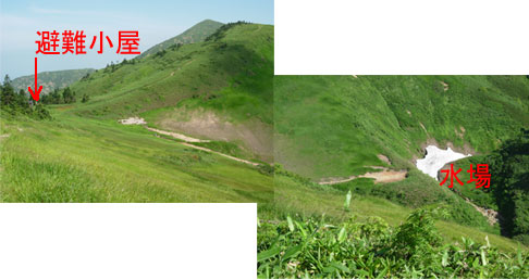 巻機山避難小屋から5分ほど緩やかに下ったところにある。雪渓の沢水だが,汚れもなく美味しく飲めた。秋まで大丈夫と思われる。写真から感じる程の急勾配ではない。雪渓の沢水利用です。![]() 桜坂駐車場の50mほど手前にトイレのそばに水栓(蛇口)があるが,飲めるかどうか不明。歯磨き洗顔には利用した。 |