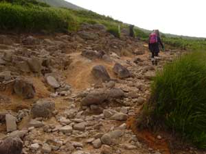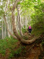 | 8月は低山では暑いのでどこに行こうか悩みました。一昨年(平成18年)のこの時期は越後駒ヶ岳へ小屋泊まりをしました。昨年は南門内岳から焼石岳に行きましたが,あまりの暑さに南門内川源頭で目眩を感じました。軽い熱中症になったようです。標高が低かったのが影響したと思います。 以前から巻機山には一度登ってみたかったのですが,一日で3峰をやるのはきついだろうと思い躊躇していました。小屋泊まりでなら出来るかもしれないと思い,今回挑戦してみることにし,検討してみたところ,以前登った北海道のニペソツ山,群馬の袈裟丸山から後袈裟丸山(寝釈迦コース)とほぼ同じ体力度であることが分かりました。 これなら朝早く出発すれば何とか日帰り登山が出来るとの結論になり,今回挑戦してみることにしました。 1時間登って10分間休憩のペースをしっかり守り,何とか3峰を登り登山口に帰ってくることが出来ました。 久しぶりに達成感を味わった山行でした。登山道はガレと木道と丸太階段の連続で,歩きにくかったのですが,五合目,七合目が我々の歩行で調度1時間のところにあったので,リズム良く進むことが出来ました。また,割引岳,牛が岳も要所の休憩になり助かりました。 山行途中にあまり花がなかったのですが,ハクサンコザクラとモウセンゴケの花を見ることが出来たので,まずまず満足して帰ってきました。 登山あとは小出町隣の旧湯之谷村にある「ゆ〜パーク薬師」で入浴後,旧湯之谷村にある道の駅「ゆのたに」で車中泊し,次の日にゆっくり帰ってきました。 夕食はネットで評価の高い行列店のラーメン「味平」で食べたのですが,我々の口にはまったく合いませんでした。前泊では「丸川屋」で食べたのです,がこちらも口にまったく合いませんでした。 翌日(11日)はコンビニで朝食を購入し,お湯を沸かしてコーヒーを飲むために, 「湯之谷交流センター 日帰り温泉 ユピオの公園駐車場」まで行って朝食をしました。 住所;〒946-0088 新潟県魚沼市大湯温泉182-1 TEL:025-795-2003 (新潟県営奥只見レクリエーション都市公園内) 大湯温泉まで行ったので,帰りは奥只見シルバーラインから檜枝岐村のコースで帰ってみることにしました。 奥只見シルバーラインはほとんどトンネルの中の走行でした。トンネルの中で右折して銀山平,檜枝岐方向に進むと,奥只見の銀山平にでます トンネルの中に標識があり,直進が奥只見ダム,右折が銀山平,檜枝岐村となっています。カーナビの方向線では奥只見ダム方向に檜枝岐村を差していますが,カーナビの走るラインは右折になっています。少し迷いましたが銀山平方面に右折しました。結局これが正解で,もし,奥只見ダムに進んでいたら,かなり先まで走った後に,Uターンして戻る羽目になるところでした。 銀山平からは奥只見湖沿いに曲がりくねった道が続き,ずいぶんと時間が掛かってしまいました。奥只見湖を半分ほど回り込んで離れていくと,やがて尾瀬登山の御池に着きました。 昼が過ぎたので,檜枝岐の蕎麦屋「開山」で裁ち蕎麦のもり蕎麦を食べました。不味くなかったです。他に「はっと餅」を美味しくいただきました。 途中何度も休憩をとりながらやっとの思いで帰宅しました。疲れました。 |