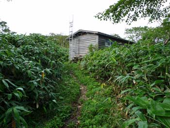 | 7:35 標高905m 笹谷峠登山口出発。 コンクリート舗装道路を進みますが,「ここは違うぞ」みたいな看板が設置されていて,若干不安を抱えながら進んでいくと,間もなく笹に覆われた登山道が右側にあります。看板があります。見逃すことはないですが,見逃すとどんどん上に行ってしまいます。 ![]() このコンクリート舗装道路から避難小屋が見えます。この小屋が見えると登山道です。中は見なかったのでどうなっているのか不明です。避難小屋なのかな? ![]() 笹刈りされた登山道になっています。 ![]() 7:46 標高950m 電波塔通過。 ![]() 登山道はきれいに笹刈りされていました。 ![]() 8:20 標高1,105m 関沢分岐通過。 道標有り。「雁戸山に至る。笹谷峠に至る。関沢に至る。」 ![]() 8:36 標高1,200m 登山道途中で休憩。 キイロイグチ?がありました。写真に撮りました。 ![]() 8:50 出発。 休憩時間14分。 9:19 標高1,325m 不明分岐通過。 道標がありません。ここは分岐ではないようです。どこに通じているか不明。 花撮影で5分ロス。 9:22 標高1,325m カケスガ峰分岐通過。 八丁平,関沢分岐の道標有り。カケスガ峰とは記載されていません。 9:50 標高1,350m 新山分岐到着。 休憩。 「新山」は新しい山ではなく,新山という地区の名前でした。 山頂から数名グループが降りてきました。後からは男性二人組とご夫婦が到着しました。 ![]() これから向かう雁戸山山頂が見えます。 ![]() 10:02 出発。 休憩時間12分。 ここまで意外に暑くないです。 ここからいよいよ急登の雁戸山山頂への急登が始まります。 「蟻の戸渡り」を進むので少し緊張感を持って行きます。 ![]() 急登が続きます。振り返ってみると蔵王山,神室岳,月山山塊が見えます。今日は展望が利きます。 ![]() ![]() ![]() 10:35 標高1484.6m 雁戸山山頂到着。 山頂直前の登りは急登でした。でも,ここがほんとに蟻の戸渡り?という感じでした。余り恐怖感がありません。トンボがいっぱい飛んでします。 高度計は1,555mを示しているので修正しました。 ![]() |