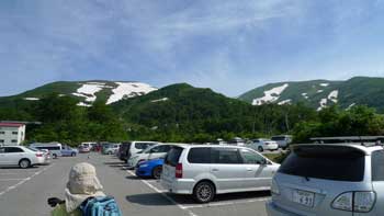 姥沢小屋手前400mの所に大駐車場あり。1000台位停められそうだ。(ちょっとオーバーかな) 駐車料金1,000円/台![]() 姥沢小屋登山口にも15台位駐車可能だが,今回は規制されていて駐車不可。 |