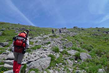 宮城県 月山 平成22年6月26日(土)山行 登山ルート;リフト終点→姥が岳→月山→姥沢小屋分岐→姥沢小屋登山口 標高;標高; 姥が岳1,669.7m 月山1,979.5m |