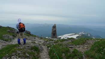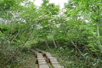 宮城県 月山 平成22年6月26日(土)山行 登山ルート;リフト終点→姥が岳→月山→姥沢小屋分岐→姥沢小屋登山口 標高;標高; 姥が岳1,669.7m 月山1,979.5m |