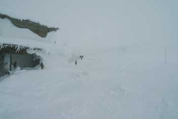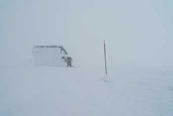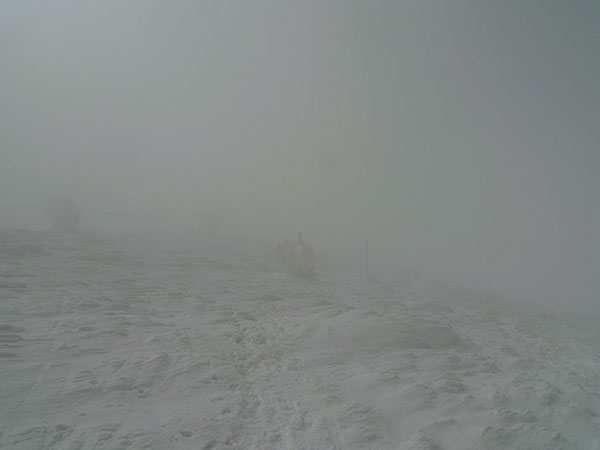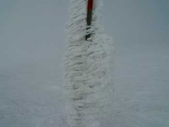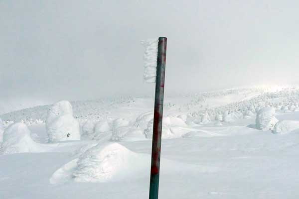 | 山 行 記 録 ; 駐車場で支度を整え,駐車場からすぐのリフト乗り場に向かいました。ここからは中丸山がくっきりと見えています。 ![]() リフト券売り場の奥のトイレで用を済まし,いよいよ出発です。 ![]() リフトに乗りながら,左に見える中丸山と右側に見える樹林帯を撮影しました。 ![]() 帰りは奥に見える樹林帯の中を下ってきました。 ![]() 9:45 標高1445m リフト終点出発。 素晴らしい景色が広がっています。「ボコボコボコだー」 ![]() 10:07 標高1525m ガードレール道路到着。 この周辺は樹氷原になっています。素晴らしい景色が広がっています。 山頂方向がガスっている様で,山頂が見えないのが気がかりです。 ![]() ![]() 10:08 標高1525m。 ガードレール出発。 休憩時間1分。 地形図を確認しました。 写真を撮ったり寄り道したりでのんびり進みました。 避難小屋が見えてきました。残念ながら山頂はガスの中です。どこまで行けるでしょうか。 ![]() 10:25 標高1535m 避難小屋通過。 単独男性下山者によると夏リフト乗り場終点でガスと風が強く戻ってきたとのことですが,少しガスが晴れている様にも感じます。 ![]() ポールにエビのしっぽができています。 ![]() 10:33 標高1585m 旧夏リフト乗り場到着。 ![]() かなりガスが濃いです。右方向を見ると夏リフトの旧売店とトイレが微かに見えています。 あそこに建物があると分かっていなければ,判別付かないほどのガスです。 10:37 旧夏リフト乗り場出発。 休憩時間5分。 ここで服装を整えて出発しました。 ![]() 進行方向はガスが濃くて上手く写りませんでした。 こんなエビのしっぽもありました。 ![]() 11:08 標高1710m 夏リフト終点到着。 撤退。 80m先が辛うじて見える程度のガスです。無理をしないで引き返すことにしました。 ![]() ここの手前ですれ違った40人ほどの団体が刈田岳まで言って下りてきたと言っていました。ガイド付きとはいえ驚きです。 |