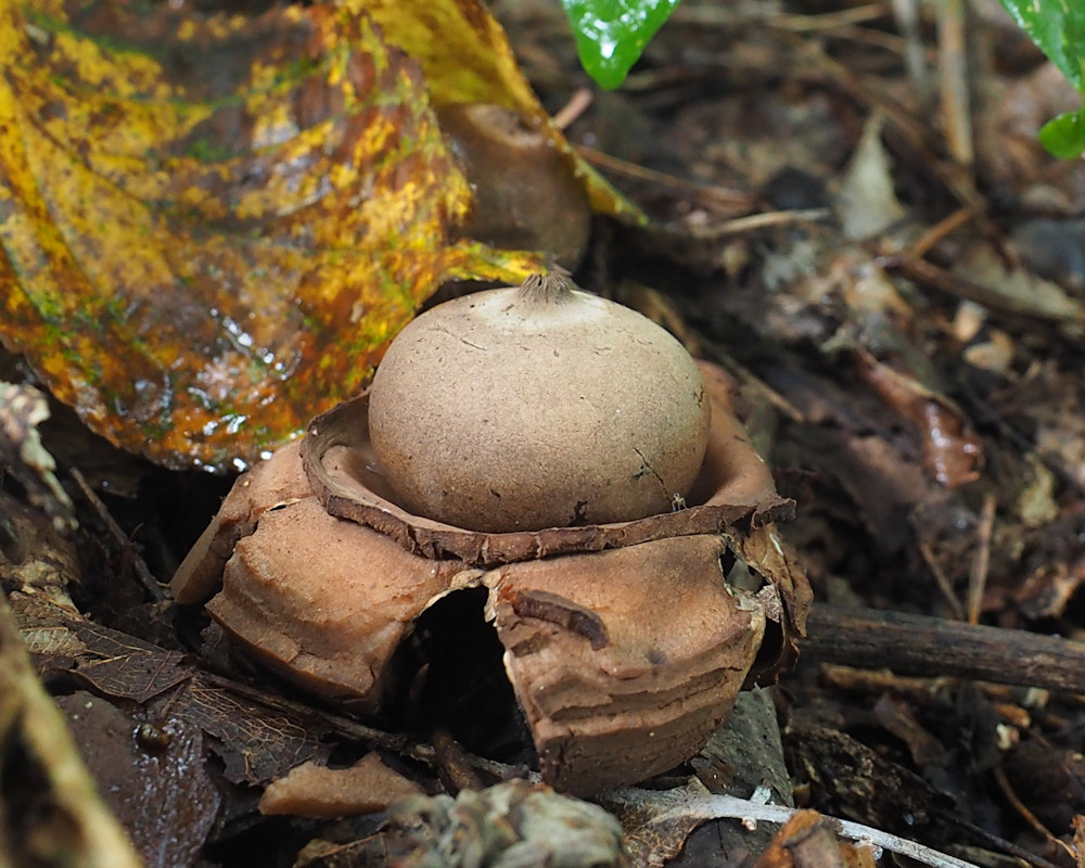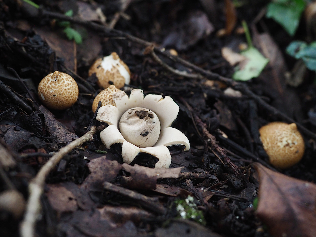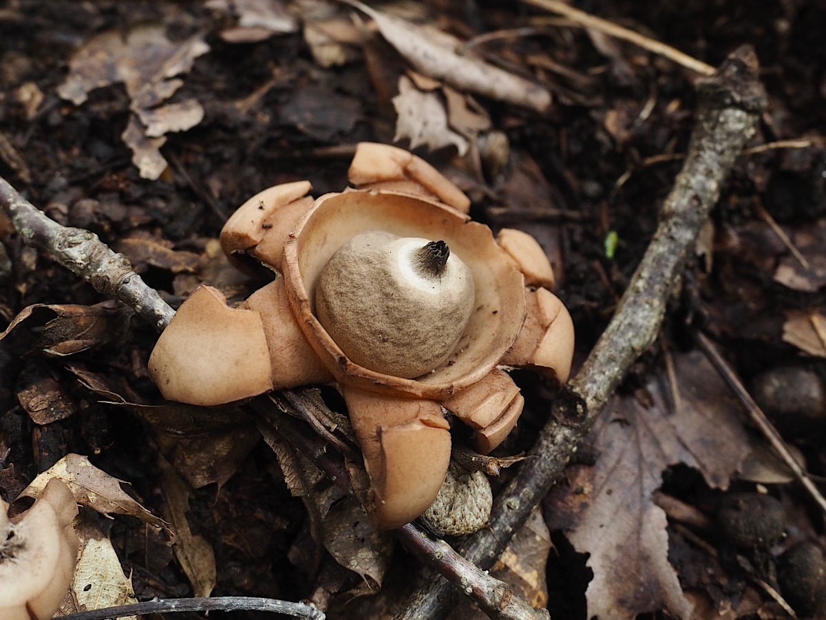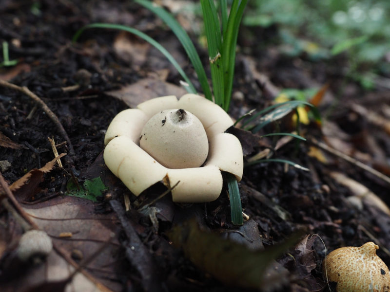 エリマキツチグリはその名のとおり、丸い基本体の外皮が開き、基本体の周りを襟巻のように囲むことから名づけられたと思われる。多くの図鑑やネットでもエリマキツチグリで調べると、そのイラストや画像を見ることができる。画像からは「なるほどぉ、襟巻だね」と思う形状をしている。
