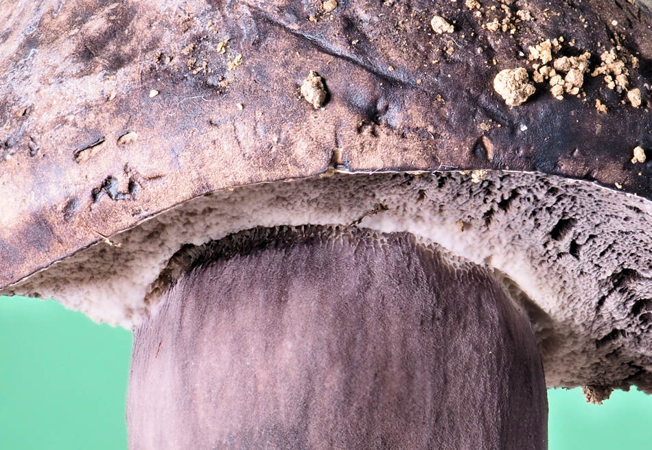 下記子実体の柄の頂部には網目がはっきりと確認できます。