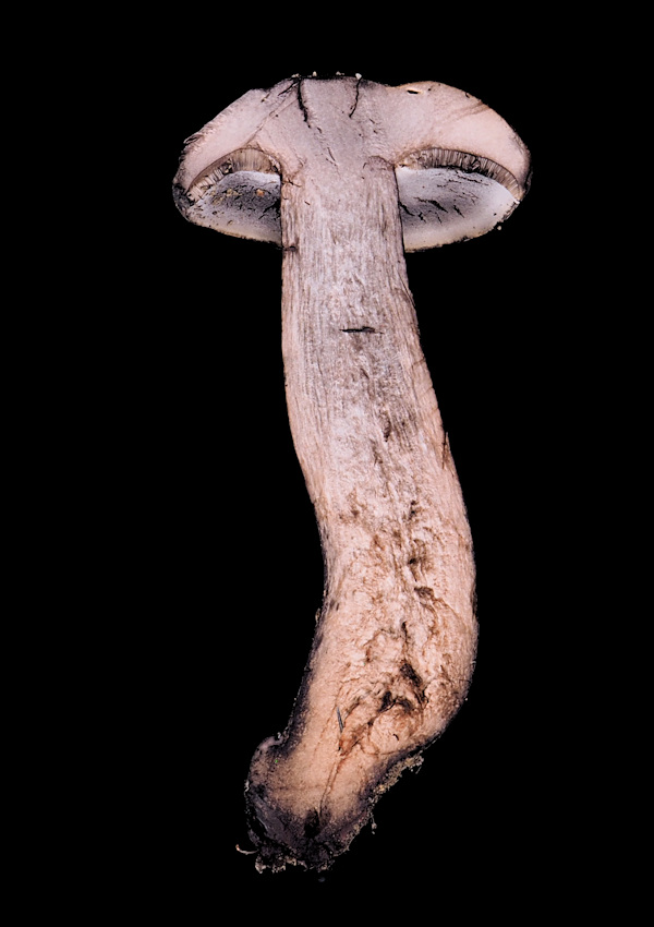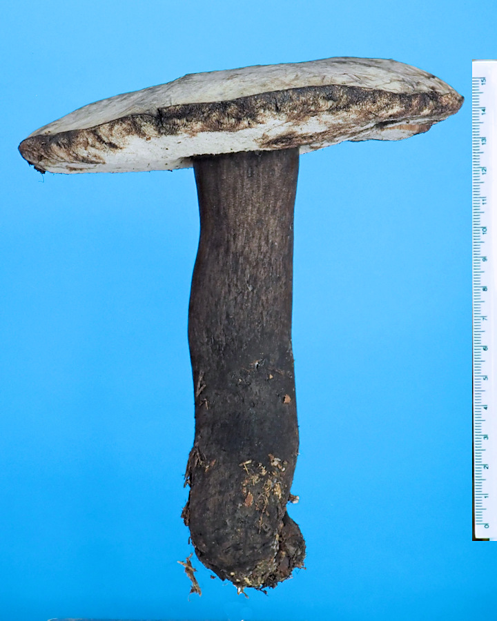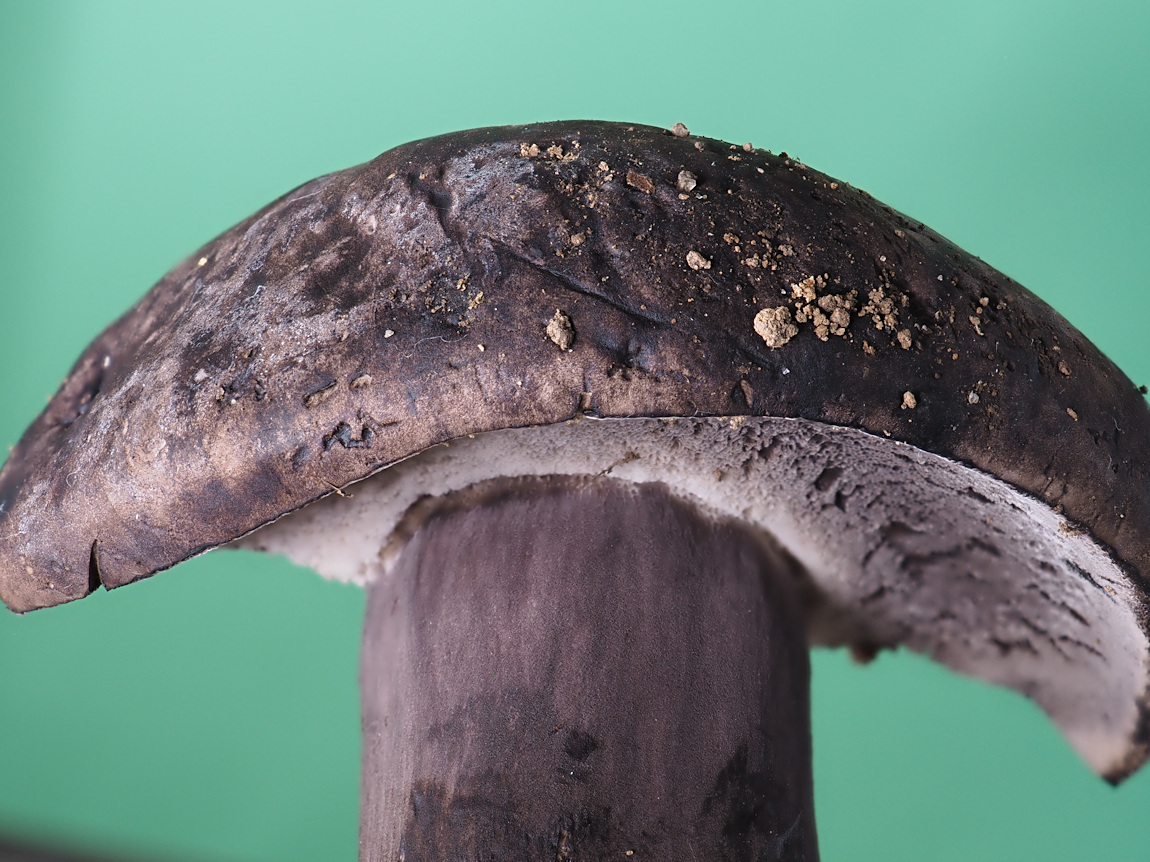 大型のイグチで傘は柄に比べると淡色だが、全体に黒みが強いのが特徴かな。大きな特徴は傷つくと黒色変するか、淡紅色変しその後黒色変すること。なので野外で観察されるときは、しばしば真っ黒に変色していることがあるので、出会ったときはちょっと驚くかもしれない。