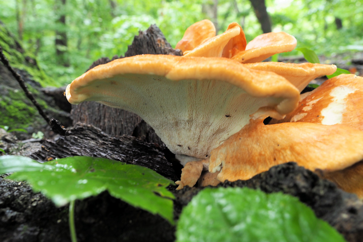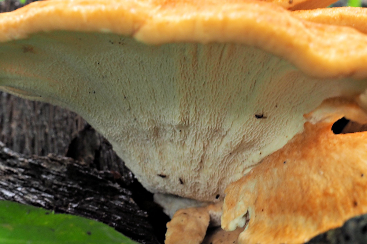新鮮な、つまり比較的若い子実体に出会うと、とてもきれいな山吹色にちょっとした感動を覚え、しばし鑑賞してしまうほどきれいなきのこだ。若いうちは食べられるようだが成熟すると硬くて食不適とのこと。