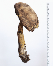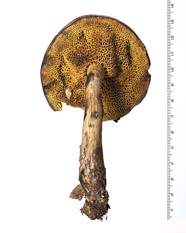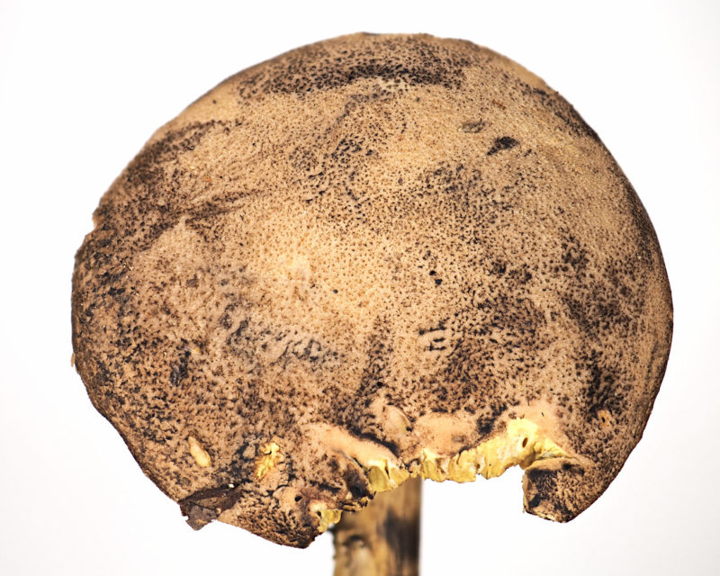 クロアザアワタケBoletus nigromaculatus (Hongo) Har. Takah. きのこ観察記録 Twitter Facebook はてブ Pocket LINE コピー 2025.03.15 見た目は「なんか汚いなぁ」と感じるほど黒いシミや斑点などがあり、このきのこを初めて見た人のほとんどは「きれいだなぁ」と、決して感動を覚えないだろう。 擦ったり傷ついたりすると黒色に変色するので、見た目が地味なうえに黒色の斑点があるので、手で触るのを躊躇する人がいるかも。私はもちろん「クロアザアワタケあった~!」って喜んで触るけど。 [2023年(令和5年)08月20日 ] 阿武隈山地