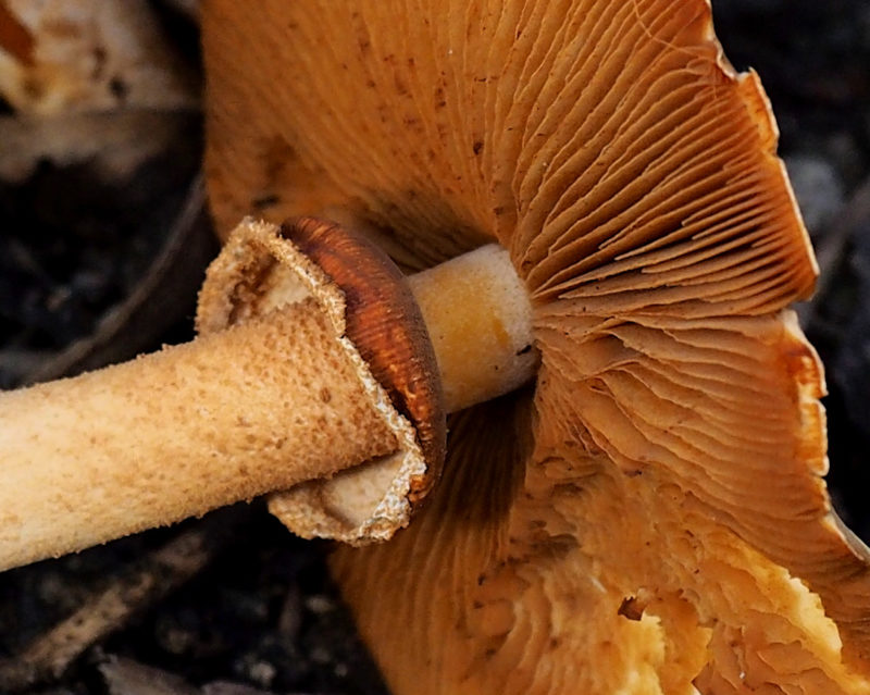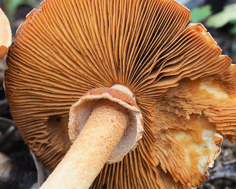その名のとおり黄金色をしている。また、幼菌から若い菌は全体に黄金色の粉を被ったようになっていて、指で触ると指先にその粉が引っ付いてくることから、コナカぶりなどの別名がある。