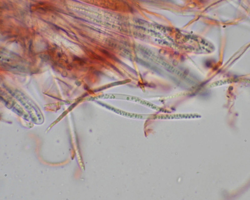 あるきのこ教室で講師の一人として参加した観察会で、このきのこの群生しているところに出会った。