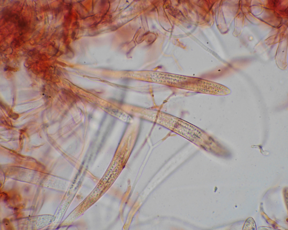 私は、発生し時間がたって傷んだのこだと思い、気にも留めず写真を撮ることをしなかった。ところが、この日の講師の一人だった大ベテラン会員の方が「このきのこはゴンゲンタケだ」と教えてくれた。初めて聞く種名に私自身の頭の中に「???」のクエスチョンマークがいくつも付いた。鑑定会の会場で図鑑を調べてみると図鑑に掲載されていたので、ベテラン会員の慧眼に感服したことを記憶している。