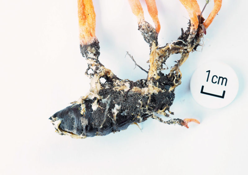 ちなみに冬虫夏草とは虫やクモ、ハエ、ハチなどに寄生し、その体を養分に成長する菌類の総称。