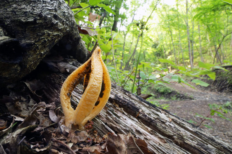 ちなみに「グレバ」には様々な虫が寄ってきて嘗めとっていく。そのグレバには胞子が含まれていて、結果的に虫たちが胞子を運ぶ役目を担っているようだ。