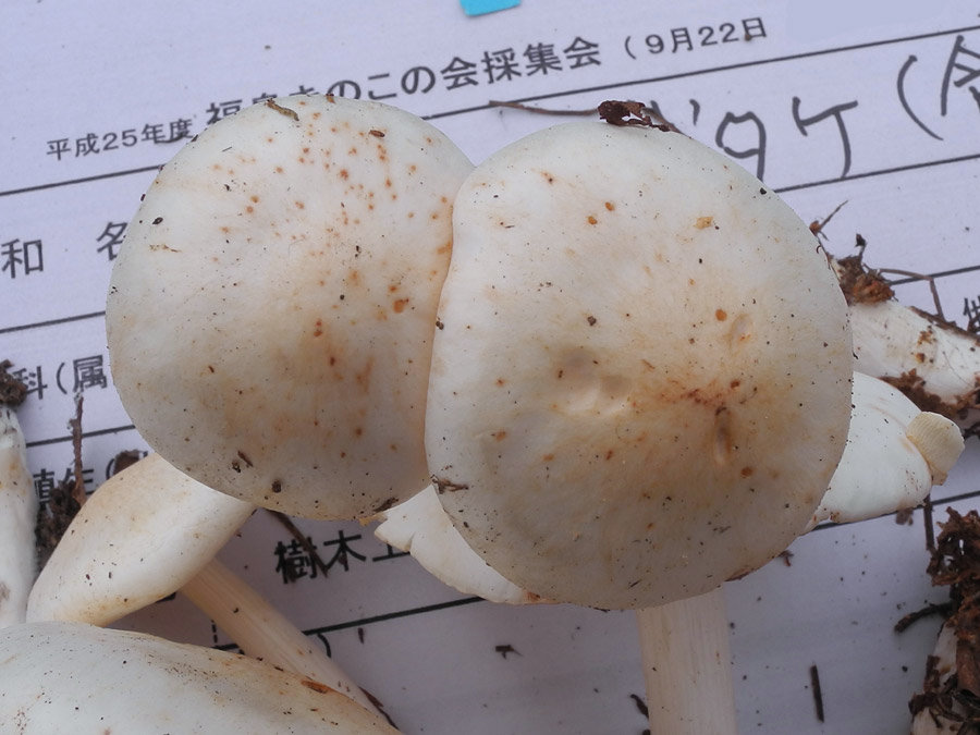 アカアザタケ(Rhodocollybia maculata)2013年(平成25年9月22日) きのこ観察記録 Twitter Facebook はてブ Pocket LINE コピー 2022.02.24 きのこ観察会で集合時間に少し早いので、集合場所の近くの林に入ったら大量に発生していました。傘も柄も傷つくと赤い染み状に変色するので、アカアザタケと種名が付けられたと思っています。