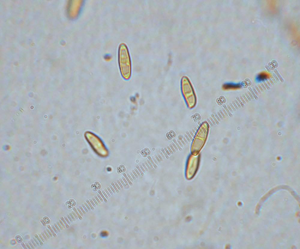 胞子紋は帯オリーブ黄土色かな。新版北陸のきのこ図鑑では黄土色、原色日本新菌類図鑑ではオリーブ色と記述されているが、その中間のような色合いだった。