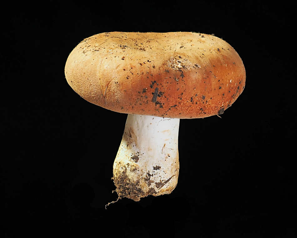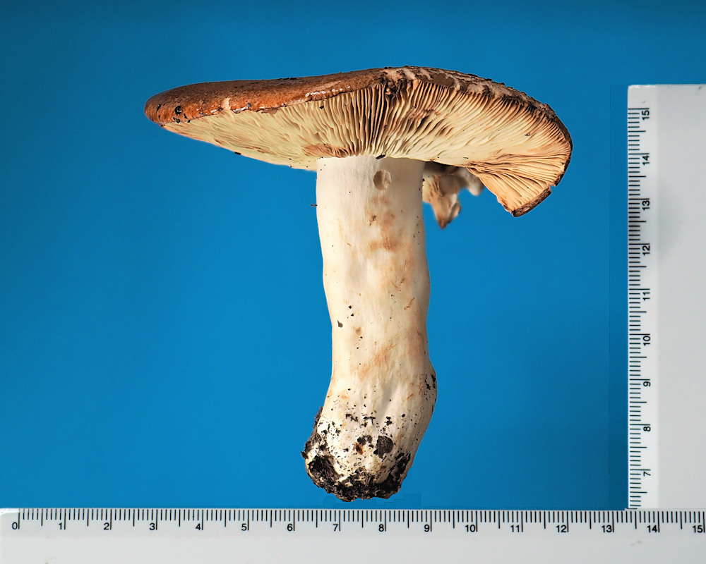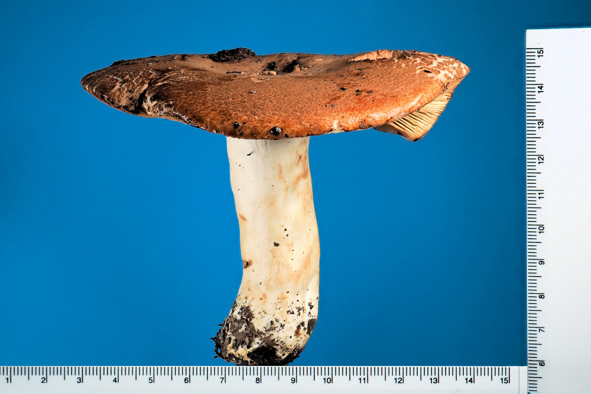 誰かが手に取ったのか蹴飛ばしたのか不明だが、道ばたに転がっていたアカカバイロタケ。標本撮影風に撮ってみた。臭いがきつかったぁ。
