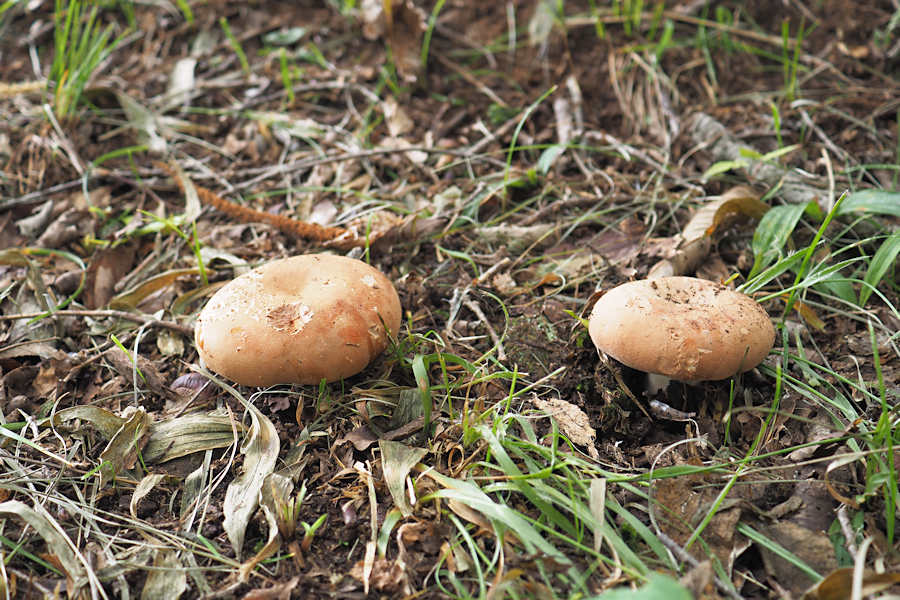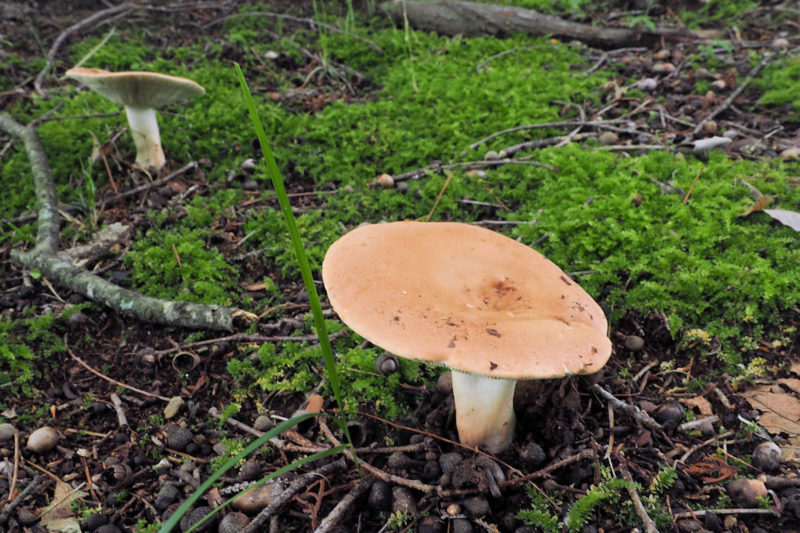 山頂まできのこが全くない状態だった。山頂広場で少しだけあった。その一つがこのアカカバイロタケだが、これは数本散らばるように出ていた。