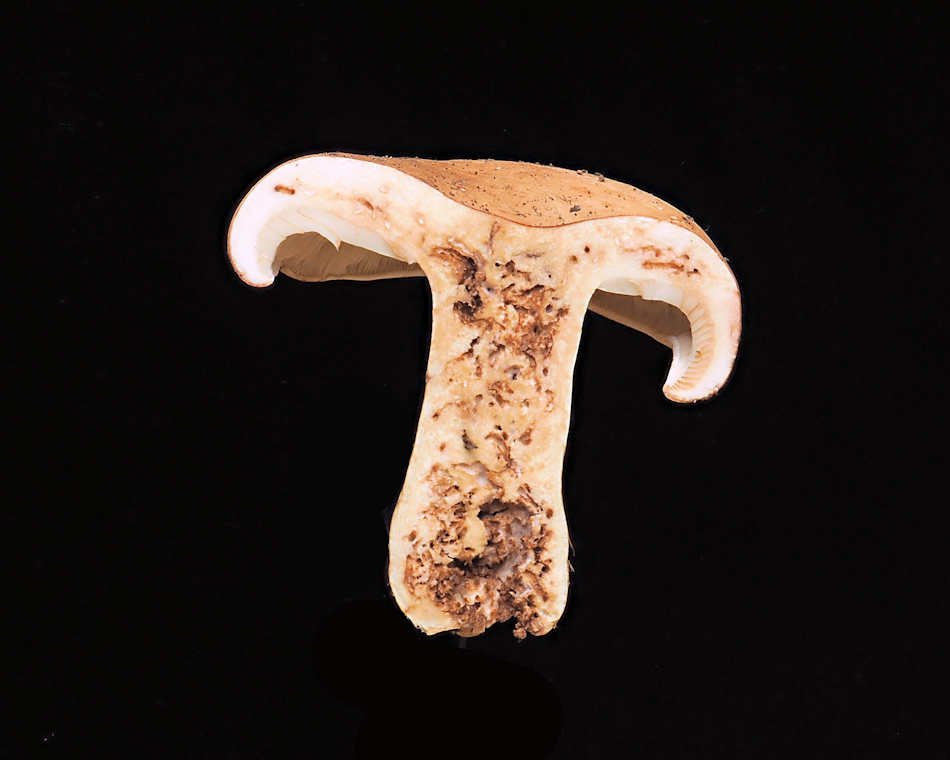 このきのこ特有の煮干し臭がした。擦ると赤褐色になるのも特徴かな。