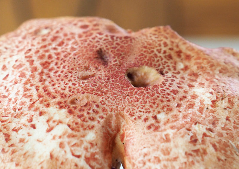 アカツブフウセンタケとしたが種名について要確認と考えている。色合いが濃すぎるのと、傘の鱗片が明瞭でない。