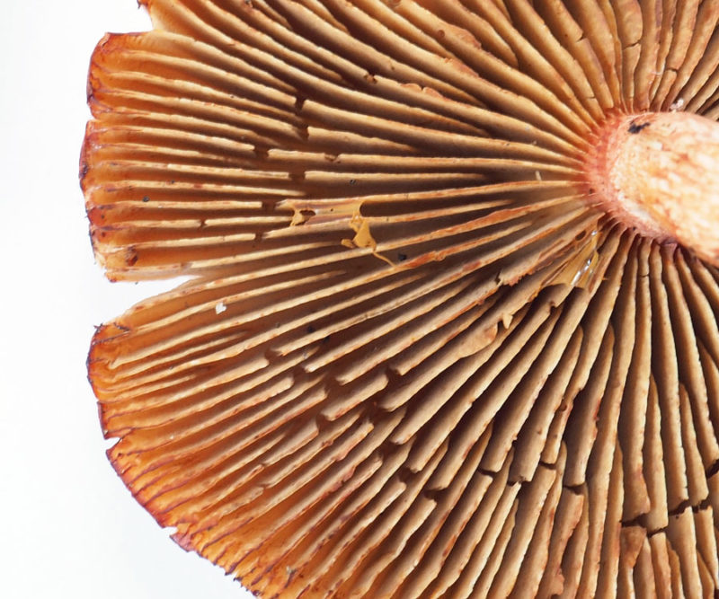 柄にフウセンタケ特有のクモの巣膜状のつばが確認される。