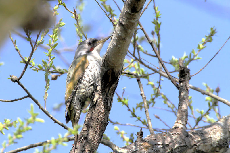 アオゲラ[2017年(平成29年)4月28日 アオゲラ Twitter Facebook はてブ Pocket LINE コピー 2022.02.27 この周辺に行くと1度は出現する。しかも警戒感が少ない。他の場所では鳴き声だけで姿を見るのは少ない。枝の影が残念だ。日差しの強いときはこんなことが多いな。