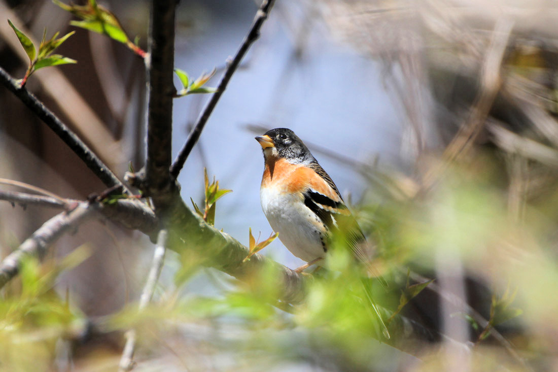 4月9日にはお気軽登山で山頂に着いたとき,1,000羽以上のアトリの群れに遭遇しました。100~200羽の群れが次から次と,わき上がってきて壮観でした。
