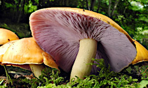 きのこ観察記録 ウラムラサキシメジ(Tricholosporum porphyrophyllum) 自然の中でこのきのこの傘だけを見ていると、明黄土色の普通のきのこが束生しているだけに見える。しかし、傘の裏のひだを観察すると、そのひだの色がとてもきれいな紫であることに、見た人はきっと感動するだろうと思っている。 [2024年(令和... 2025.03.05 きのこ観察記録ウラムラサキシメジ(Tricholosporum porphyrophyllum)