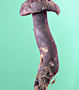 大型のイグチで傘は柄に比べると淡色だが、全体に黒みが強いのが特徴かな。大きな特徴は傷つくと黒色変するか、淡紅色変しその後黒色変すること。なので野外で観察されるときは、しばしば真っ黒に変色していることがあるので、出会ったときはちょっと驚くか...