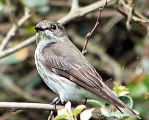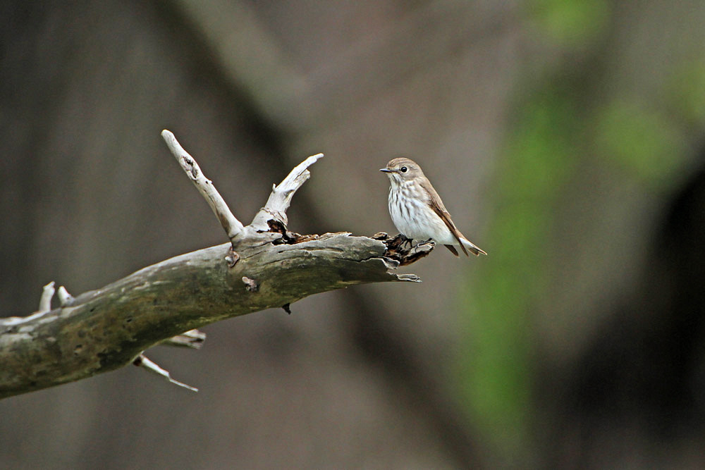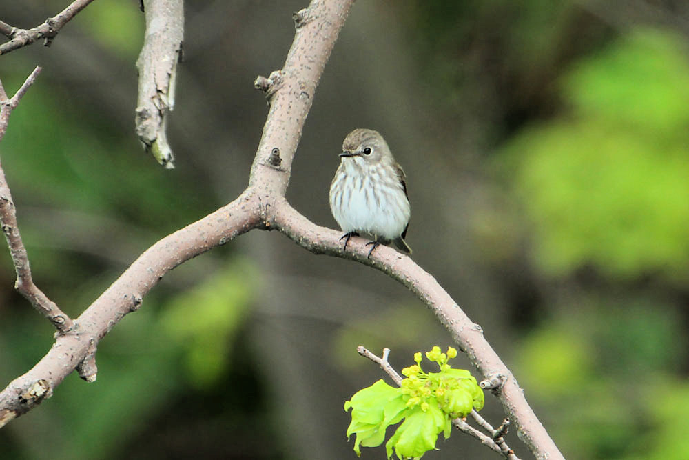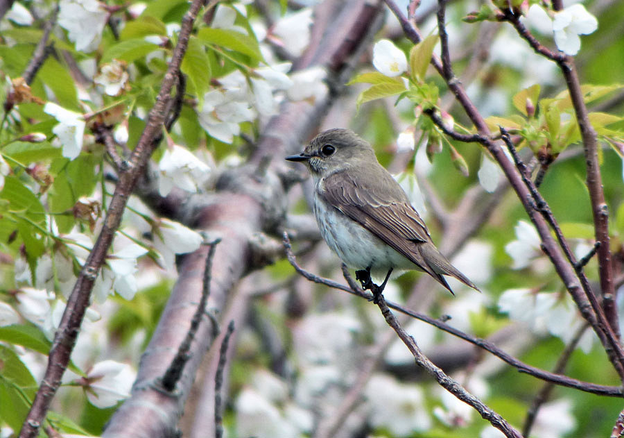 エゾビタキは巨木の森で一度見ただけですが,一カ所に割と長い時間居てくれたので,じっくりと見ることができました。エゾビタキの特徴は胸から腹にかけての縦班(縦縞)です。