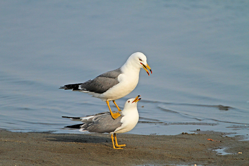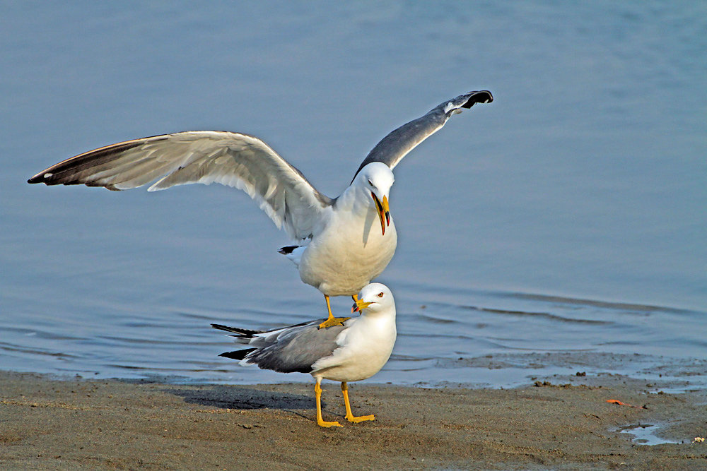 離れていった嘴の反りの少ないオオソリハシシギを待っていたら、近くでウミネコが繁殖行動をしていました。